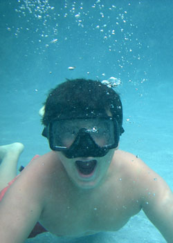 Using the Optio underwater initially requires a leap of faith. I had planned to don my scuba gear and check it out at the bottom of my pool. That was a tad cumbersome and so I did the next-best thing, hit the rather cold pool with my ten-year-old son and snap pics of him diving. I put the camera underwater, having the awful feeling that it might die right then and there. It didn't. My son took it to the bottom of the pool, which is eight feet, and it was none the worse for wear. The snapshots came out nice, we had tons of fun playing with the camera in the water, and it was a cinch to dry it off afterwards (except for the carry strap that takes a lot longer to dry; they should have used a plastic or ntlon strap instead of fabric). Just make sure to look out for waterspots on the protective glass in front of the lens. If there are any, wipe them off as they'll impact picture quality.