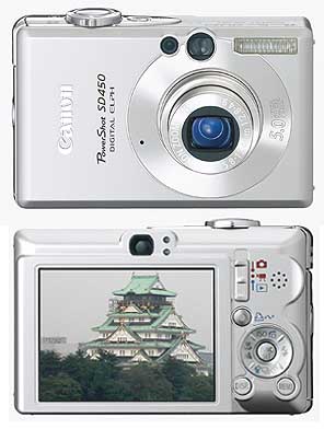 The Canon SD450 has a high quality look and feel and that also shows in details such as a metal tripod mount. It's an easy-to-use point & shooter that fits anywhere and has some neat tricks like displaying a picture in landscape or portrait depending on how you hold the camera.