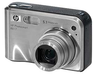 Though Hewlett Packard has been selling digital cameras for a long time, somehow we never had high expectations for any HP camera. While no one would ever question HP's technological competence, for some reason the computing behemoth generally seems content to issue ho-hum digicams that are dumbed down to an extent that makes them nearly unusable for any serious photographer. However, there are some indications that HP is seeing the error in its ways. As of this writing, HP no longer sells any digicam under 4 megapixel. And there is now a good variety of pretty interesting cameras. Truth be told, you wouldn't expect a new beginning just from the looks of the PhotoSmart R817. Its oddly designed brushed metal body with a cheap-looking faux carbon fiber insert doesn't look like much. Ergonomic indents in the metal look more like the camera has been banged up (though they fit your fingers nicely). Else, there really isn't much to say about the design other than we wouldn't exactly call it "thin."