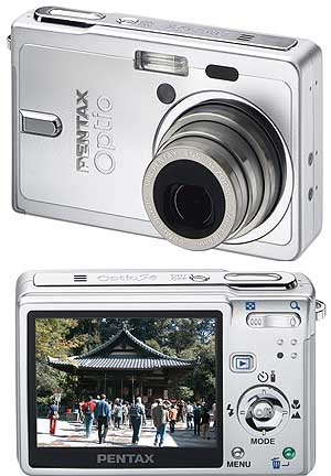 However, somehow this time Pentax managed to do it better than virtually anyone else. This is a truly tiny camera. Because it's a little box it doesn't appear as slender, but it is among the very thinnest, has the second smallest volume, and at an incredible 4.2 ounces including its battery it weighs the least, by a good margin. It does all that and still packs a 6-megapixel CCD imager, a huge 2.5-inch LCD with the highest resolution of all cameras in this roundup, and onboard power and I/O jacks. That's truly an accomplishment Pentax can be proud of.