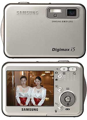 Not so long ago we were surprised when a Samsung camera popped up in our editorial offices. We're used to them now. Samsung is coming on strong and they're getting better and better. Also, unlike, say, Konica Minolta which offers just a very few carefully selected models on the US market, Samsung has, literally, several dozen. Whatever style or design you prefer, Samsung has something to accommodate you, and then some. Fortunately, Samsung's PR team made the choice for us, and so we ended up with the Digimax i5. Though the picture above shows it in silver, ours came in a very attractive semi-gloss black (red is available as well).