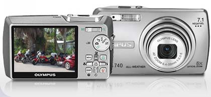 We so happened to review the Olympus Stylus 740 the same time we reviewed the Stylus 720 SW. Both are modern 7.1 megapixel cameras that are relatively comparable in size. So why does Olympus offer two such seemingly almost identical cameras? Because they are anything but identical. In fact, when you place them side by side, they don't even look alike. They are completely different designs. The 720 SW was designed as a waterproof camera that can easily survive an hour at depths up to ten feet. That makes it perfect to have around the water, be it boating, swimming, snorkeling or even diving. The 740, on the other hand, is merely an "all-weather" design. It has seals and gaskets to make it splash-proof (and snow-proof), but you can't submerge it in water.